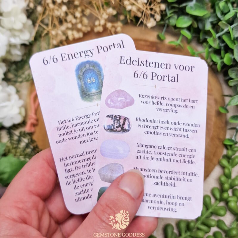 De energie van deze vijf stenen weerspiegelt de zachte trilling van het 6/6 Energy Portal, een poort van liefde, harmonie en emotionele heling. Deze set helpt je om terug te keren naar het centrum van je hart, waar rust, compassie en vrede wonen. Gebruik de stenen wanneer je behoefte voelt aan zachtheid, herstel of innerlijke balans.