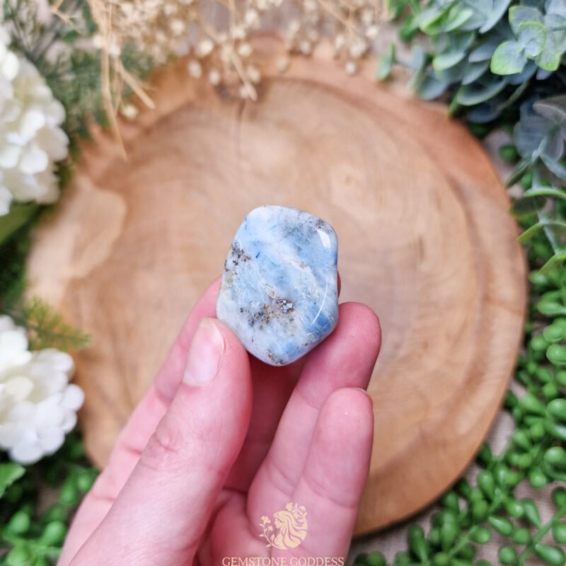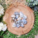 - Draag als sieraad of draag een steen bij je voor heldere communicatie en innerlijke rust. Plaats bij je meditatieplek of draag bij je keelchakra tijdens visualisaties of sprekende activiteiten. Houd vast wanneer je duidelijkheid zoekt in gedachten of gevoelens, je je intuïtie wilt versterken, of je jouw waarheid vanuit kalmte en vertrouwen wilt uiten.