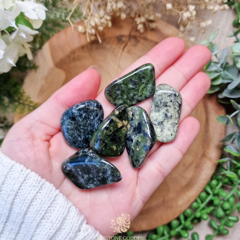 - Antigoriet wordt gevonden in onder andere Italië en Zuid-Afrika. Deze groene variant van serpentijn wordt gewaardeerd om haar beschermende en zuiverende werking. In spiritueel werk wordt antigoriet ingezet voor diepe energetische reiniging, bescherming en het herstellen van innerlijke balans.