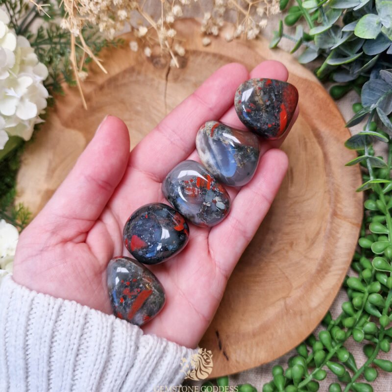 Afrikaanse bloedsteen is een steen van fysieke en emotionele kracht. Zijn diepe kleuren en krachtige aardende energie helpen bij het loslaten van angst, versterken van de wilskracht en beschermen tegen negatieve invloeden. Hij wordt al eeuwenlang gebruikt als beschermamulet en genezingssteen.