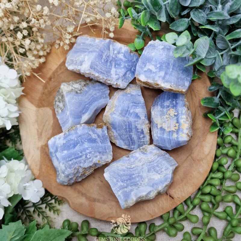 • Blue lace agaat opent en kalmeert het keelchakra en helpt je om je stem te vinden op een manier die verbonden is met je hart. Ze maakt je ontvankelijk voor zachte energieën zoals engelen, innerlijke leiding en intuïtieve boodschappen. Deze steen is perfect voor meditatie, affirmatiewerk of het uitspreken van je zielswaarheid in liefdevolle vormen. Ze herinnert je eraan dat echte kracht vaak stil en zacht is.