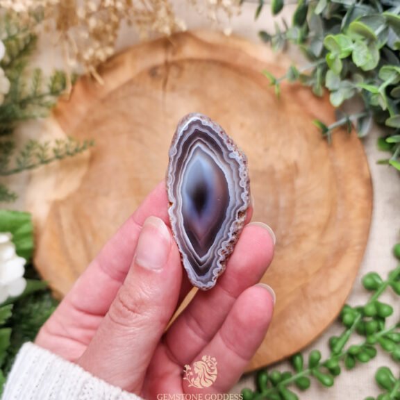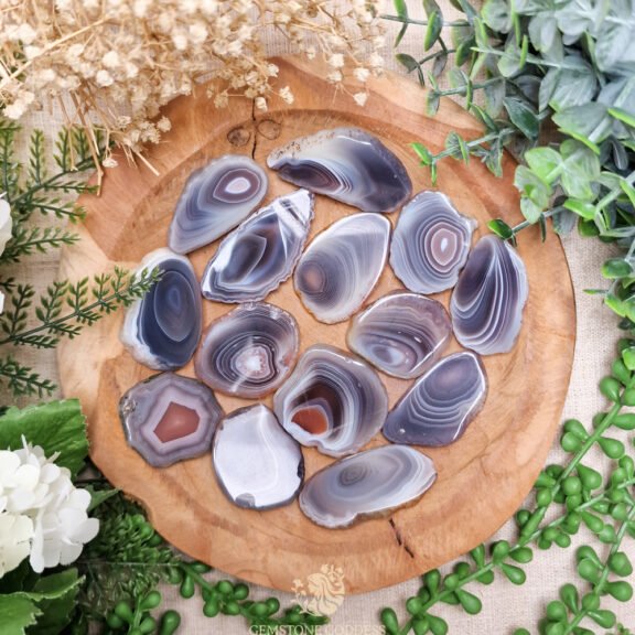 - Draag Botswana agaat als sieraad of draag een steen bij je voor innerlijke kracht, emotionele stabiliteit en bescherming. Plaats bij je werkplek of meditatieplek om rust te brengen tijdens drukke of emotioneel uitdagende momenten. Houd vast wanneer je je in een periode van verandering bevindt, behoefte hebt aan troost en stabiliteit, of je energieveld wilt zuiveren van spanning en zorgen.