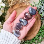 - Draag Botswana agaat als sieraad of draag een steen bij je voor innerlijke kracht, emotionele stabiliteit en bescherming. Plaats bij je werkplek of meditatieplek om rust te brengen tijdens drukke of emotioneel uitdagende momenten. Houd vast wanneer je je in een periode van verandering bevindt, behoefte hebt aan troost en stabiliteit, of je energieveld wilt zuiveren van spanning en zorgen.