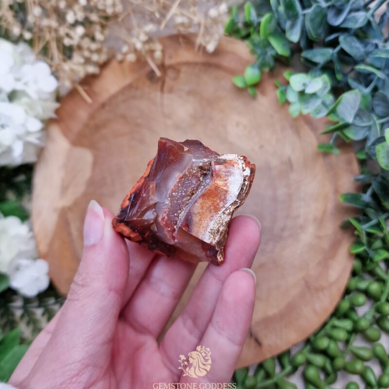 - Draag carneool als sieraad of bewaar een steen bij je om energie en motivatie te versterken. Plaats hem in je leef- of werkruimte om een inspirerende en dynamische sfeer te creëren. Gebruik hem tijdens meditatie om creativiteit te stimuleren en innerlijke kracht te activeren. Houd vast wanneer je behoefte hebt aan meer moed, motivatie of een energieboost.