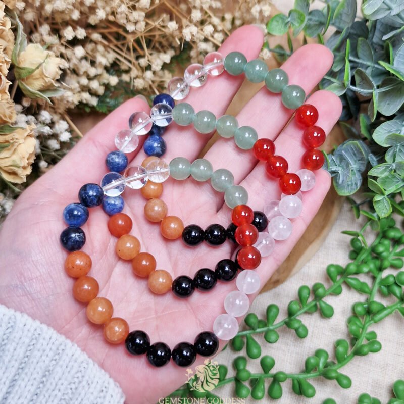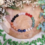 - Elke steen ondersteunt een specifiek chakra, wat resulteert in een diepere verbinding tussen lichaam, geest en ziel. Onyx verankert je energie in de aarde, carneool activeert je levenskracht, gele aventurijn brengt balans in je persoonlijke krachtcentrum, groene aventurijn opent het hart voor liefde, sodaliet zuivert communicatie, rozenkwarts verzacht je intuïtieve zelf, en bergkristal verbindt je met je hogere bewustzijn. Samen vormen ze een compleet energetisch systeem voor groei, zuivering en spirituele integratie.
