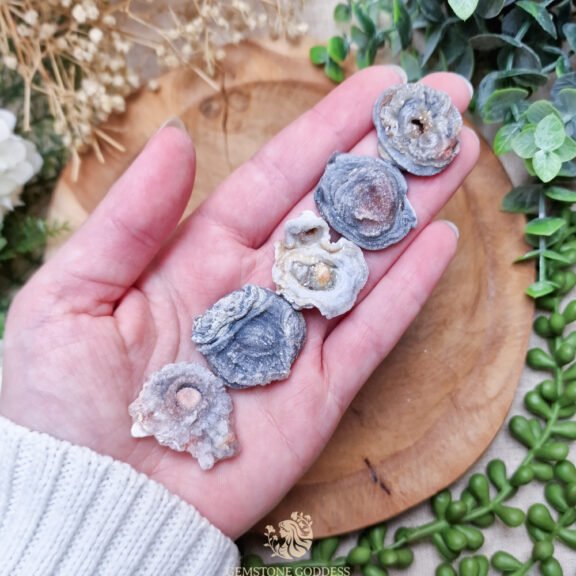 - Plaats chalcedoon roos in je leefruimte voor harmonie en zachtheid. Gebruik tijdens meditatie om inzicht en rust te vinden en je hart en keel te openen. Houd vast in stressvolle momenten of tijdens gesprekken om communicatie, geduld en verbinding te versterken.