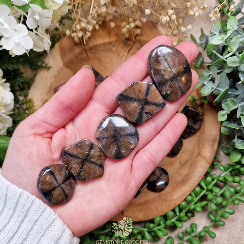 - Deze steen wordt vaak geassocieerd met uithoudingsvermogen en vitaliteit. Chiastoliet helpt bij het herstellen van energie, ondersteunt de bloedcirculatie en wordt traditioneel gebruikt om de fysieke en emotionele balans te versterken. Hij kan helpen bij het verminderen van stressgerelateerde spanningen en het bevorderen van diepe ontspanning.