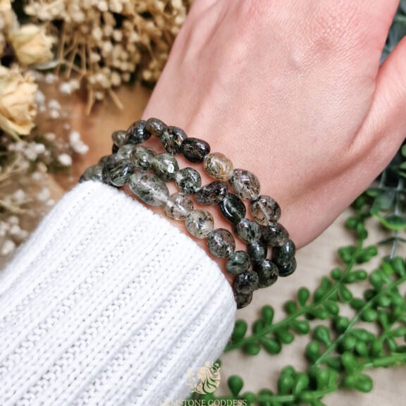 - Deze steen opent het hartchakra en ondersteunt een diepe verbinding met het helende veld van de aarde. Chloriet in kwarts wordt vaak ingezet bij healingrituelen, aura-reiniging en spirituele detox. Ze helpt je om energetische restanten van oude pijn, trauma of negatieve invloeden los te laten. Ook versterkt ze het contact met natuurwezens, aarde-energie en spirituele begeleiders die heling ondersteunen.