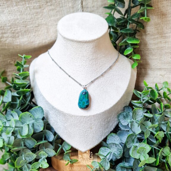 - Naast spirituele toepassingen wordt chrysocolla gebruikt in sieraden en decoratieve objecten vanwege zijn unieke kleurschakeringen en rustgevende uitstraling.
