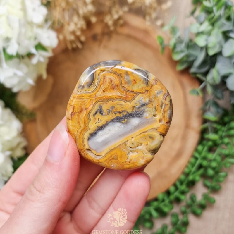 Crazy lace agaat is een steen van levensvreugde en beweging. Zijn unieke, kronkelende patronen symboliseren de golven van het leven en herinneren ons eraan dat verandering een natuurlijk en noodzakelijk proces is. Deze steen helpt om lichtheid en speelsheid te omarmen en bevordert een energieke flow.