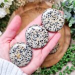 - Op mentaal niveau werkt dalmatier jaspis kalmerend en stabiliserend, waardoor hij helpt bij stress en negatieve gedachten. Zijn speelse energie herinnert je eraan om niet te streng voor jezelf te zijn en plezier te maken. Dit maakt hem ideaal voor mensen die zichzelf vaak onder druk zetten of last hebben van pessimisme.