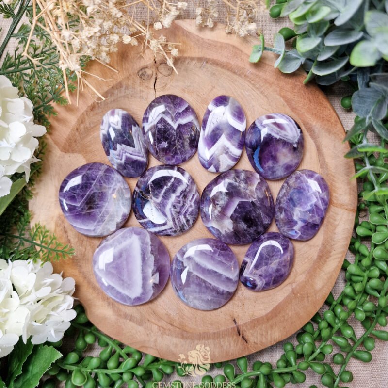 - Dream amethist, ook bekend onder de namen chevron amethist en amethistkwarts, opent zacht maar krachtig je derde oog en kruinchakra, waardoor je intuïtieve vermogens worden versterkt en je je dieper kunt verbinden met spirituele inzichten. Tijdens meditatie helpt ze je om je geest tot rust te brengen en toegang te krijgen tot hogere kennis en innerlijke wijsheid. Ze fungeert als een energetisch schild, beschermt je aura tegen verstorende invloeden en helpt je om op een zuivere manier je spirituele pad te bewandelen. Haar energie nodigt je uit om dieper te vertrouwen op je innerlijke kompas en je open te stellen voor begeleiding van je hogere zelf.