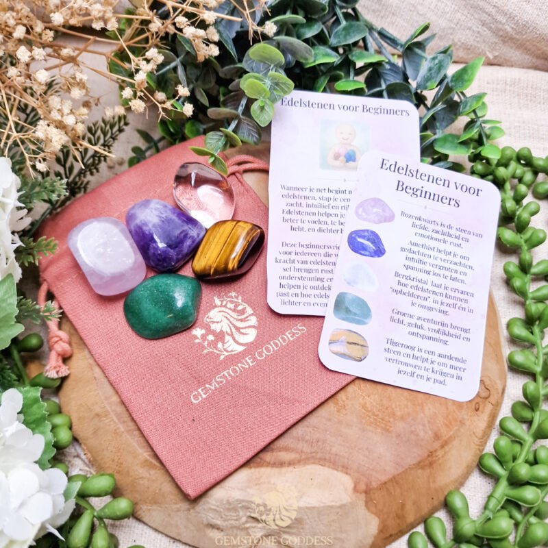 Een harmonisch fundament voor iedereen die met edelstenen begint. Het getal vijf staat voor balans tussen lichaam, geest, hart, energie en intuïtie — precies wat je nodig hebt als je start met edelstenen. In deze set vertegenwoordigt iedere steen één van die pijlers: