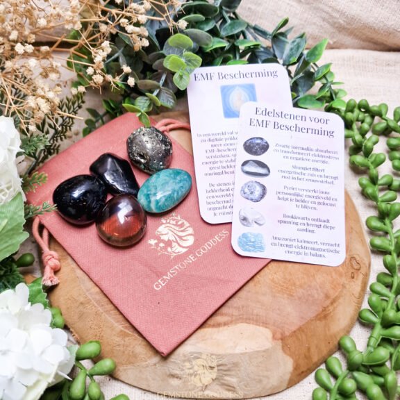 Deze EMF-beschermingsset ondersteunt je in een wereld vol digitale prikkels, straling en energetische drukte. De stenen helpen je aura te versterken, spanning uit je lichaam te ontladen en je energieveld te stabiliseren, zodat je beter kunt functioneren in moderne omgevingen zoals werkplekken, thuis, school of onderweg.