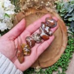 - Fossiele jaspis versterkt de verbinding met de oerenergie van de aarde. Ze helpt je herinneren dat je deel bent van een groter natuurlijk proces en ondersteunt diepe aarding. De steen is bijzonder krachtig voor mensen die zich losgekoppeld voelen of moeite hebben met belichaming. Ze helpt om weer ‘thuis’ te komen in jezelf, geworteld en stabiel.