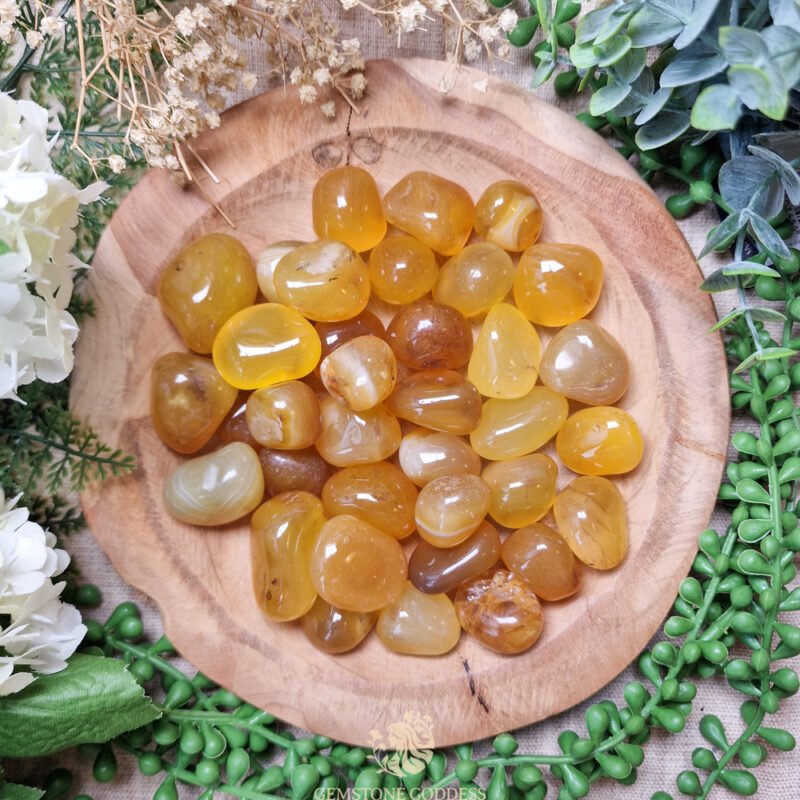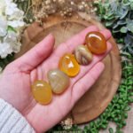 - Draag gele agaat als sieraad of draag een steen bij je voor kalmte, zelfvertrouwen en emotionele balans. Leg op de zonnevlecht om spanning te verzachten en je innerlijke kracht te activeren. Houd vast wanneer je je licht wilt laten schijnen, balans zoekt tussen energie en rust of positief wilt blijven in uitdagende situaties.