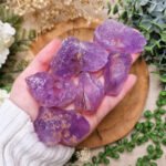 - Golden healer amethist opent het derde oog en de kruinchakra’s, waardoor je intuïtie en spirituele verbinding worden versterkt. Het gouden aspect helpt je hogere energieën te aarden en geeft kracht en helderheid. Samen ondersteunen deze energieën verlichting, balans en spirituele transformatie.