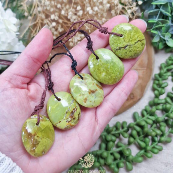 Groene opaal heeft een rustgevende en inspirerende energie, die helpt bij het loslaten van stress, het versterken van positieve gedachten en het stimuleren van creativiteit.