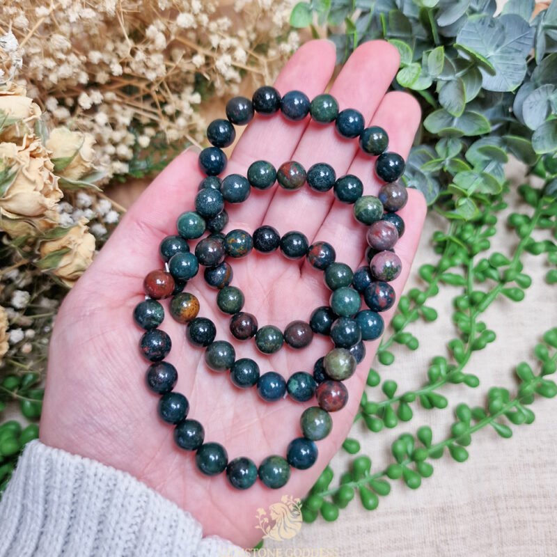 • Heliotroop, ook wel Bloedsteen genoemd, is een krachtige aardende en beschermende steen die helpt bij het versterken van innerlijke kracht en het zuiveren van energieën. Verbonden met het Wortel- en Hartchakra, ondersteunt deze steen spirituele bescherming, moed en emotionele stabiliteit.