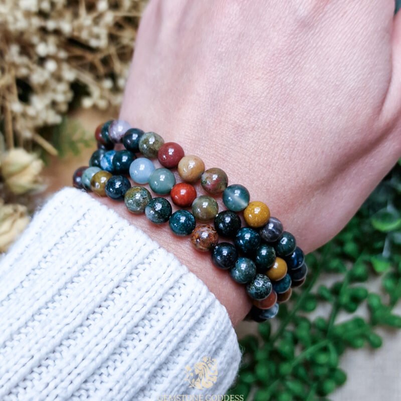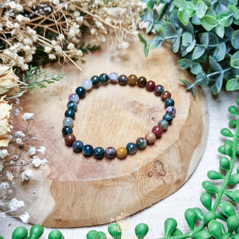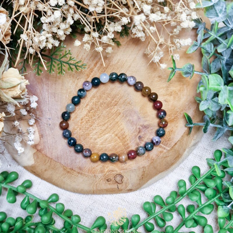 Indiase agaat is een aardende en beschermende steen, geliefd om zijn rustgevende energie en natuurlijke uitstraling. De verschillende tinten van groen, rood, bruin en geel symboliseren de connectie met de aarde en het evenwicht tussen lichaam en geest.