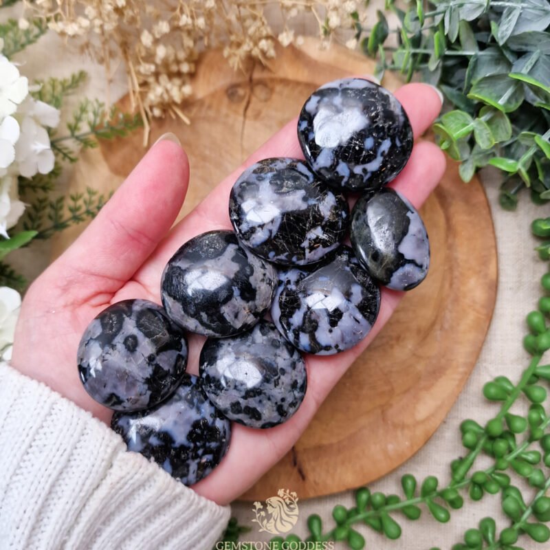 Indigo gabbro, ook bekend als mystic merliniet, is een steen van diepe spirituele transformatie en bewustwording. Zijn unieke samenstelling helpt om het Derde Oogchakra te activeren, waardoor intuïtie en spirituele inzichten worden versterkt. Hij is bijzonder geschikt voor wie zich wil verdiepen in schaduwwerk, sjamanisme of het ontwikkelen van paranormale vermogens.