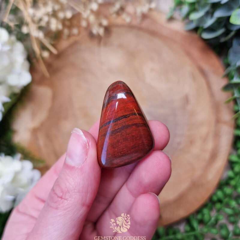 - Draag jaspilliet als sieraad of draag een steen bij je voor kracht, stabiliteit en volharding. Leg bij je voeten, onderrug of op de zonnevlecht bij meditatie, grounding of herstel. Houd vast wanneer je je energie wilt aarden, fysiek of emotioneel sterker wilt worden, of je gefocust wilt blijven op een lange termijn doel — met geduld, kracht en vertrouwen.