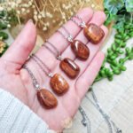 - Draag een steen bij je of leg bij je buik of onderrug voor rust, vertering en stroming. Gebruik bij self-care rituelen, integratie of om in contact te blijven met je lichaam tijdens emotionele processen. Houd vast wanneer je fysiek wilt ontgiften, meer wilt gronden in je lichaam, of energetische stroming en mineralenbalans wilt ondersteunen.