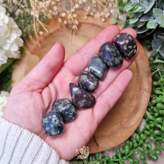- Gebruik lakelandiet bij het doorvoeren van veranderingen, tijdens spirituele retraites of wanneer je overzicht en innerlijke structuur nodig hebt. Leg op je zonnevlecht of draag bij je voor stabiliteit en daadkracht. Houd vast wanneer je een nieuwe weg inslaat, je opnieuw wilt structureren of je innerlijke kracht wilt herinneren in tijden van stilte en transformatie.