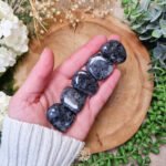 - Draag als sieraad of draag een steen bij je voor energetische bescherming en kalmte. Leg onder je kussen voor diepe rust, of bij het derde oog tijdens meditatie of visualisatiewerk. Houd vast wanneer je behoefte hebt aan zuivering, concentratie of bescherming tegen energetische invloeden van buitenaf.