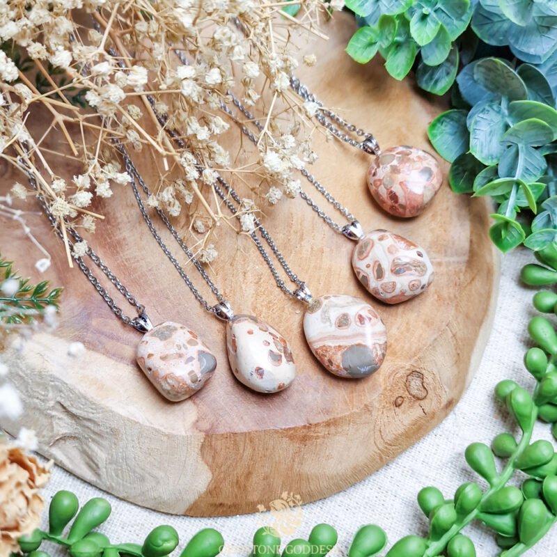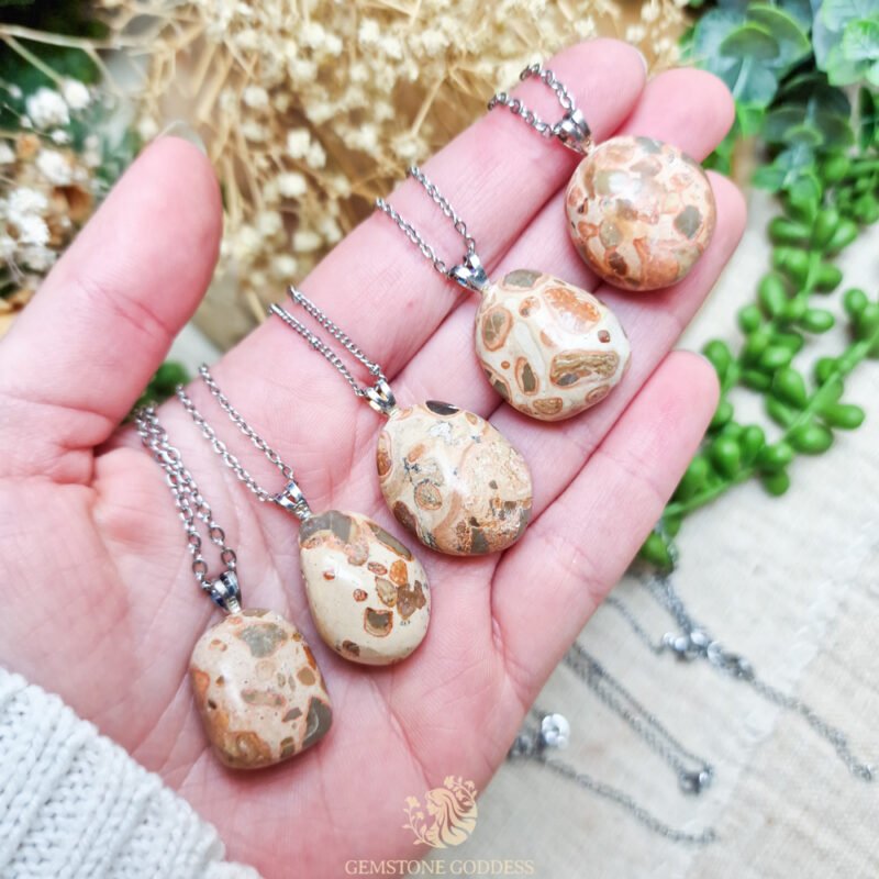 - Leopardiet wordt vooral gevonden in Mexico, Peru en Brazilië en is een variant van jaspis of rhyoliet met kenmerkende vlekken die lijken op een luipaardprint. Deze steen wordt vaak gepolijst tot trommelstenen of cabochons en is geliefd vanwege haar uiterlijk én aardende werking. Ze wordt soms verward met luipaard jaspis, maar leopardiet heeft een subtielere tekening en zachtere kleurstelling.