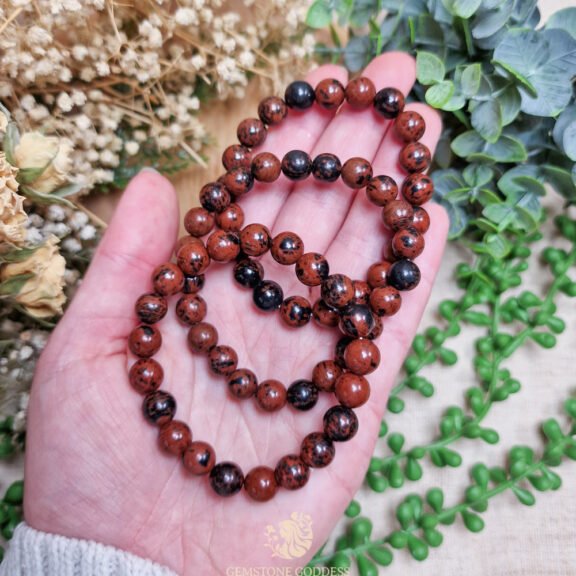 Verbonden met het Wortelchakra, biedt mahonie obsidiaan diepe aarding en bescherming tegen negatieve energieën. Via het Sacraalchakra stimuleert hij passie, creativiteit en emotionele stabiliteit. Deze steen helpt om beperkende overtuigingen los te laten en moedigt je aan om in je kracht te staan en vooruit te bewegen met vastberadenheid.
