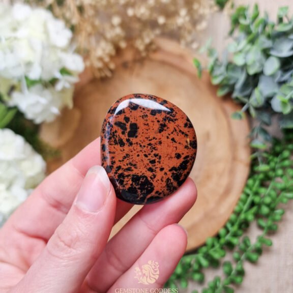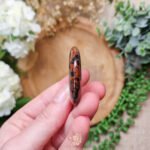 Verbonden met het Wortelchakra, biedt mahonie obsidiaan diepe aarding en bescherming tegen negatieve energieën. Via het Sacraalchakra stimuleert hij passie, creativiteit en emotionele stabiliteit. Deze steen helpt om beperkende overtuigingen los te laten en moedigt je aan om in je kracht te staan en vooruit te bewegen met vastberadenheid.