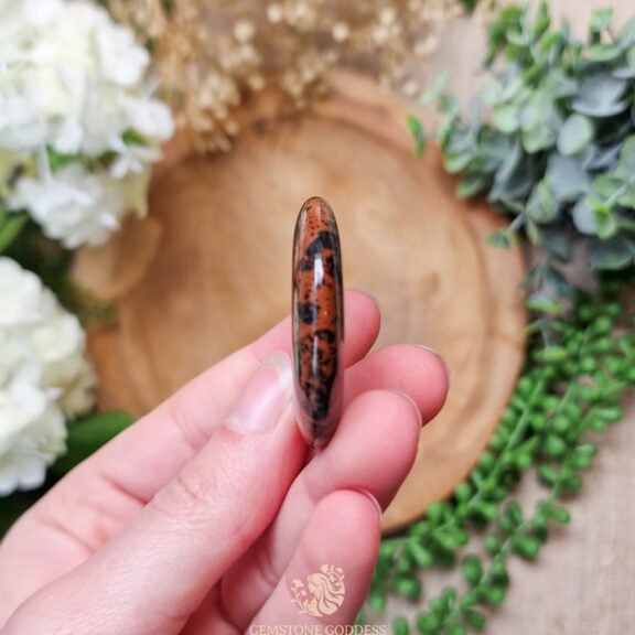- Draag mahonie obsidiaan als sieraad of bewaar een steen bij je om kracht, bescherming en emotionele stabiliteit te versterken. Plaats hem in je leefruimte om een energie van veerkracht en doorzettingsvermogen te creëren of gebruik hem tijdens meditatie om belemmerende patronen te doorbreken. Houd vast wanneer je een extra dosis moed, bescherming en stabiliteit nodig hebt in uitdagende tijden.
