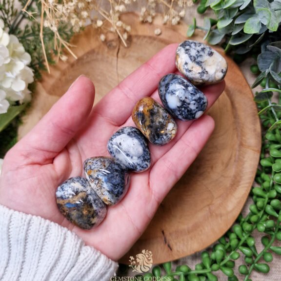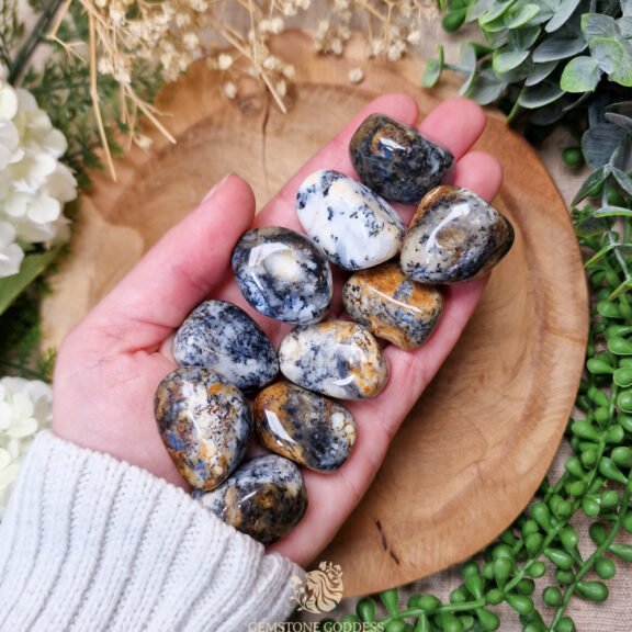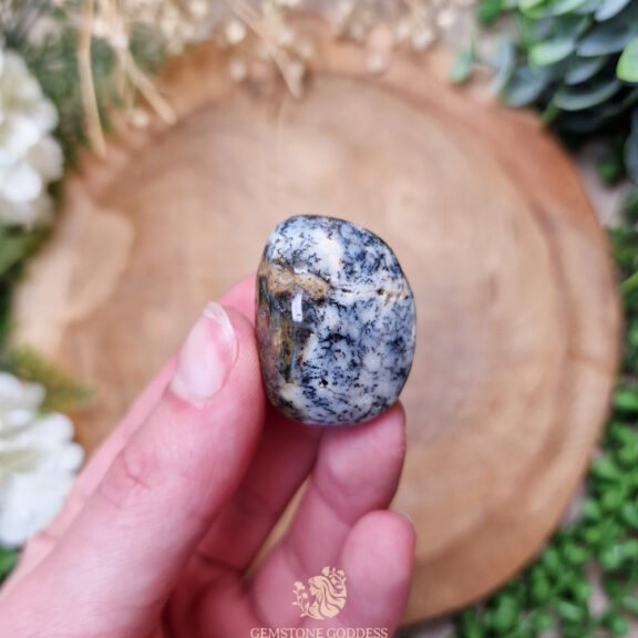 Merliniet wordt voornamelijk gevonden in Madagaskar en de Verenigde Staten, waar het zich vormt in vulkanische gesteenten. De intrigerende zwarte dendritische patronen symboliseren groei en verbinding, waardoor deze steen perfect is voor spirituele ontdekkingen en innerlijke balans.