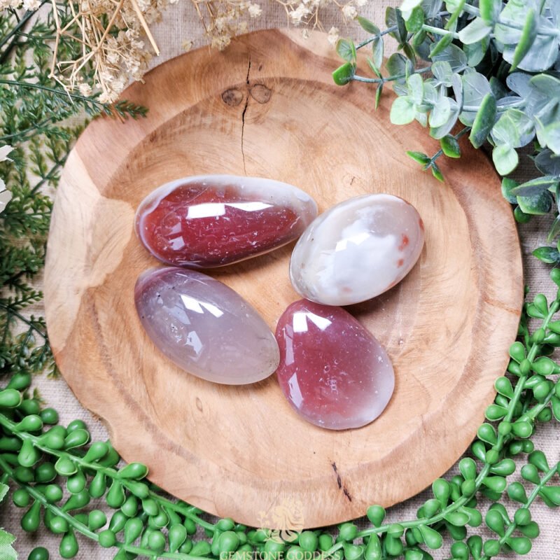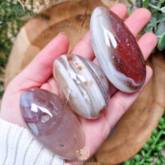 - Mozambique agaat wordt gevonden in Zuid-Afrika en Mozambique en staat bekend om zijn warme, aardse tinten en zachte helende energie. Door de eeuwen heen werd hij gebruikt als een steen van bescherming en stabiliteit, gedragen door reizigers en krijgers om kracht en veiligheid te bevorderen.