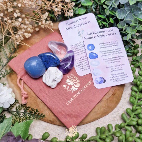 De vijf stenen van meestergetal 11 vormen samen een lichtcirkel van intuïtie, rust en hogere leiding. Ze helpen je om af te stemmen op subtiele energieën en je innerlijke stem te vertrouwen, terwijl ze tegelijk een gevoel van vrede en stabiliteit brengen. Deze combinatie begeleidt je bij het openen van je bewustzijn zonder te verdwalen in het licht, een harmonie tussen hemel en aarde, tussen voelen en begrijpen.