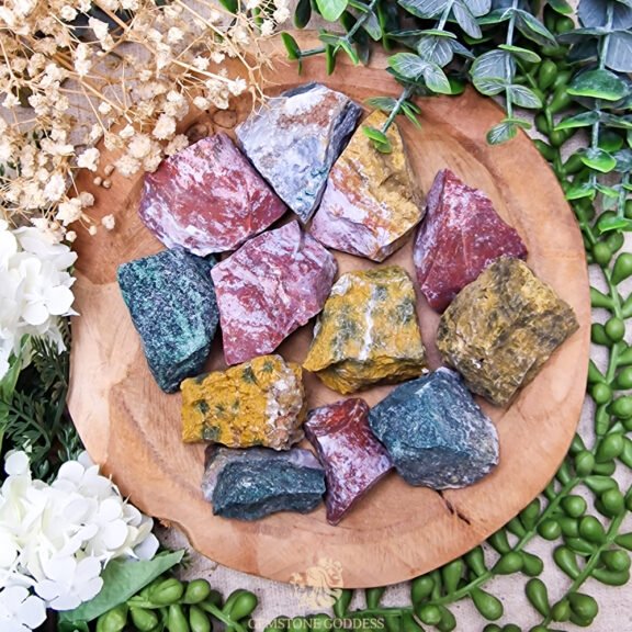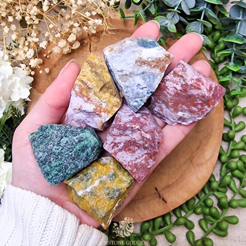 - Naast spirituele toepassingen wordt oceaan jaspis gebruikt in sieraden en decoratieve objecten vanwege zijn unieke patronen en levendige kleuren. Zijn sterkte en duurzaamheid maken hem geschikt voor beeldhouwkunst, mozaïeken en ambachtelijke projecten.