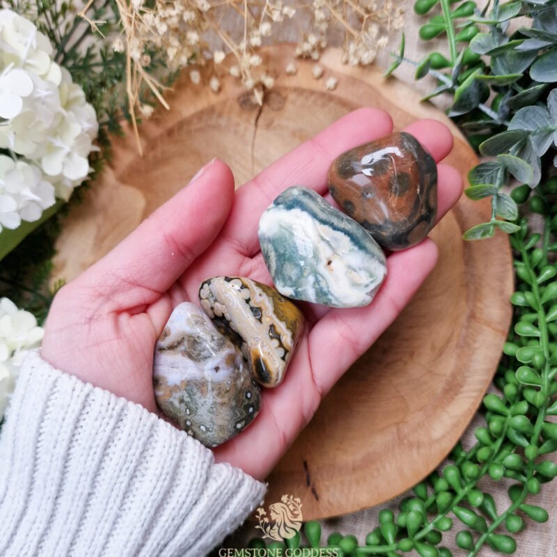 - Naast spirituele toepassingen wordt oceaan jaspis gebruikt in sieraden en decoratieve objecten vanwege zijn unieke patronen en levendige kleuren. Zijn sterkte en duurzaamheid maken hem geschikt voor beeldhouwkunst, mozaïeken en ambachtelijke projecten.