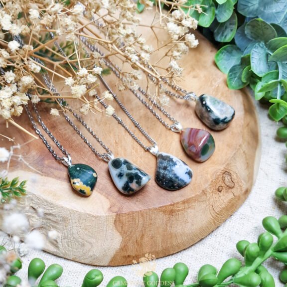 - Naast spirituele toepassingen wordt oceaan jaspis gebruikt in sieraden en decoratieve objecten vanwege zijn unieke patronen en levendige kleuren. Zijn sterkte en duurzaamheid maken hem geschikt voor beeldhouwkunst, mozaïeken en ambachtelijke projecten.