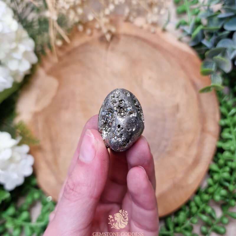 - Pyriet is een beschermende en activerende steen die je helpt om je energieveld af te schermen tegen negatieve invloeden, terwijl ze tegelijkertijd je persoonlijke kracht versterkt. Ze werkt op het zonnevlechtchakra en helpt je om je doelen met daadkracht en helderheid na te streven. Pyriet activeert het innerlijke vuur, maakt je bewust van je waarde en ondersteunt je bij het manifesteren vanuit innerlijke zekerheid. Ze is ook een uitstekende steen voor rituelen rondom overvloed, succes en zelfbevrijding.