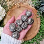 - Binnen de kristallenleer wordt pyriet geassocieerd met het bloed, de bloedsomloop, het immuunsysteem en de zuurstoftoevoer naar cellen. Ze ondersteunt vitaliteit, energieniveaus en uithoudingsvermogen — vooral tijdens herstel of periodes van fysieke belasting. Pyriet wordt ook ingezet bij spanningen in de maagstreek of bij een zwakke zonnevlecht. Door haar metaalrijke samenstelling werkt ze als een energetische batterij die het lichaam op subtiel niveau activeert en versterkt.