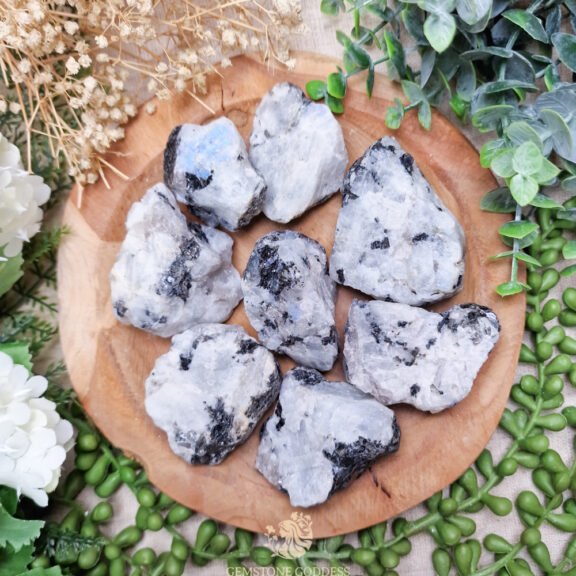 Regenboog maansteen is een steen van intuïtie, bescherming en spirituele groei. Geassocieerd met het Derde Oog- en Kruinchakra, helpt deze steen je om verbinding te maken met je innerlijke wijsheid en het goddelijke vrouwelijke in jezelf te omarmen.