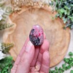 - Rhodoniet in kwarts geeft inzicht in patronen uit het verleden en helpt emotionele blokkades los te laten. Het bevordert vergevingsgezindheid, zelfliefde en het vermogen om met mildheid naar jezelf en anderen te kijken. De steen ondersteunt innerlijke balans en emotionele veerkracht.