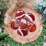 - Rode bandagaat wordt gevonden in onder andere Brazilië, Botswana en India. De opvallende gelaagde structuur ontstaat door natuurlijke afzetting van mineralen in lagen, vaak met prachtige rode, bruine en witte tinten. Al eeuwenlang wordt deze steen gebruikt als talisman voor bescherming, vitaliteit en focus.