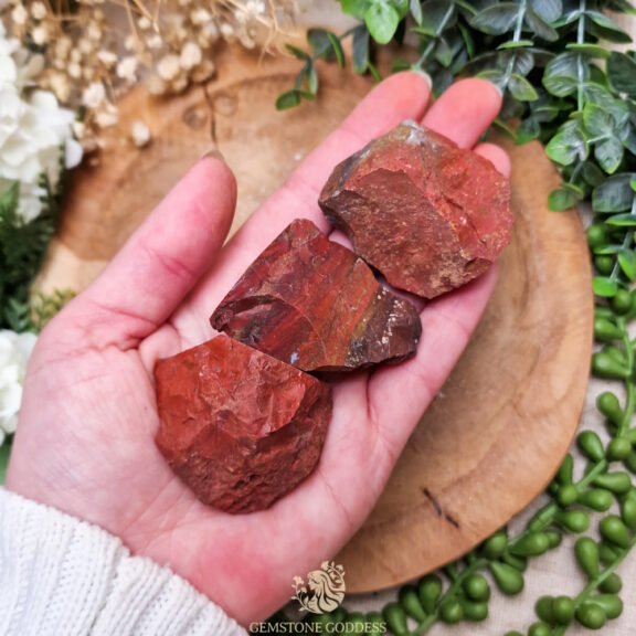 - Draag rode jaspis als sieraad of bewaar een steen bij je om fysieke energie, doorzettingsvermogen en bescherming te versterken. Plaats hem in je leefruimte om een energie van kracht en stabiliteit te creëren of gebruik hem tijdens meditatie om gronding en mentale focus te versterken. Houd vast wanneer je moed, stabiliteit en energie nodig hebt om je doelen te bereiken.