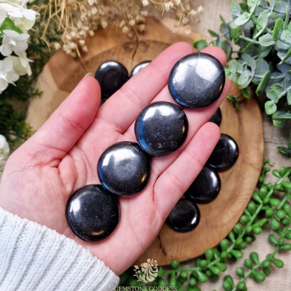 Verbonden met het Wortelchakra, helpt shungiet om diepe aarding en stabiliteit te bieden. Hij absorbeert negatieve energie en elektromagnetische straling, waardoor hij een ideale steen is voor bescherming tegen moderne technologieën zoals telefoons en WiFi-straling.