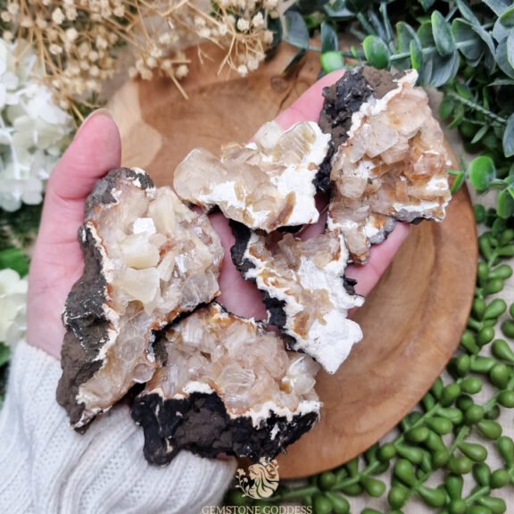 Houd er rekening mee dat kleuren enigszins kunnen variëren vanwege monitorinstellingen en verlichting. De verstrekte productfoto’s dienen als voorbeeld van onze collectie; de exacte getoonde stenen zijn mogelijk al verkocht. In dergelijke gevallen ontvang je een vergelijkbare steen van hetzelfde type, welke even speciaal is. Als natuurlijke creaties kunnen deze stenen unieke insluitsels, kleurvariaties of sporen van andere mineralen bevatten – prachtige herinneringen aan hun aardse oorsprong. ♡