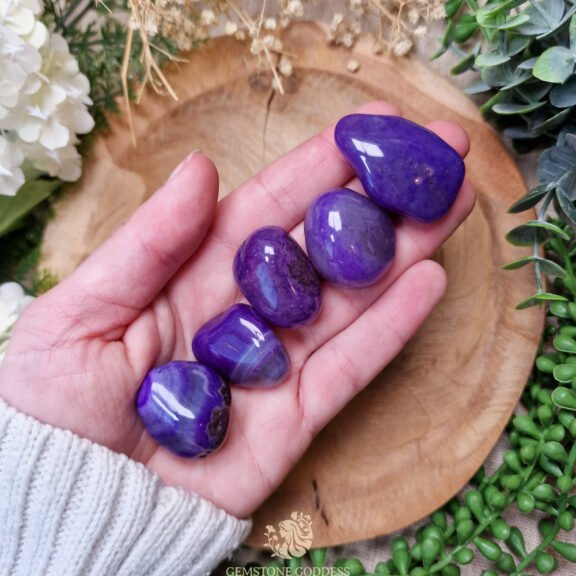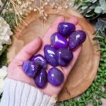 - Gebruik violet agaat tijdens meditatie, visualisatie of creatief werk om je inspiratie te versterken en je aura te beschermen. Draag bij je voor vreugdevolle, lichte energie en een speelse verbinding met je spirituele pad. Houd vast wanneer je je creatieve flow wilt versterken, je aura wilt zuiveren of je spirituele groei met speelsheid en vreugde wilt ondersteunen, in diepe verbinding met het licht en de kracht van je hogere zelf.
