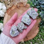 Houd er rekening mee dat kleuren enigszins kunnen variëren vanwege monitorinstellingen en verlichting. De verstrekte productfoto’s dienen als voorbeeld van onze collectie; de exacte getoonde stenen zijn mogelijk al verkocht. In dergelijke gevallen ontvang je een vergelijkbare steen van hetzelfde type, welke even speciaal is. Als natuurlijke creaties kunnen deze stenen unieke insluitsels, kleurvariaties of sporen van andere mineralen bevatten – prachtige herinneringen aan hun aardse oorsprong. ♡