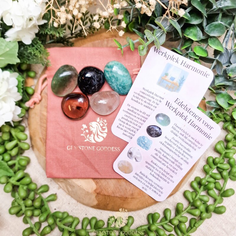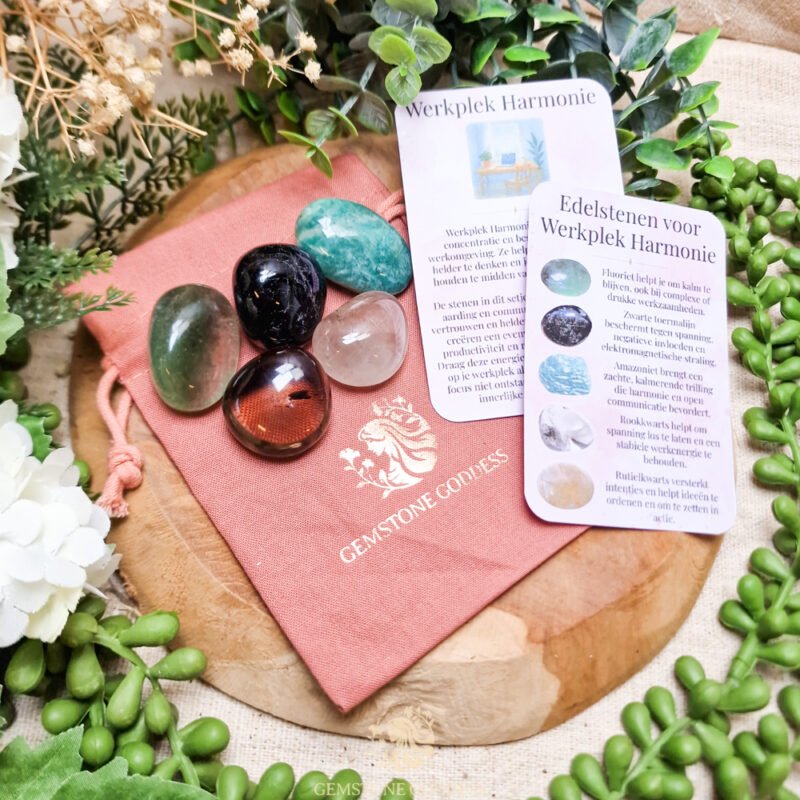 Deze vijf stenen helpen je om je werkplek om te vormen tot een ruimte van rust, helderheid en positieve energie. Werkplek Harmonie ondersteunt concentratie, neutraliseert spanning en brengt balans in de dagelijkse stroom van taken, gesprekken en gedachten.